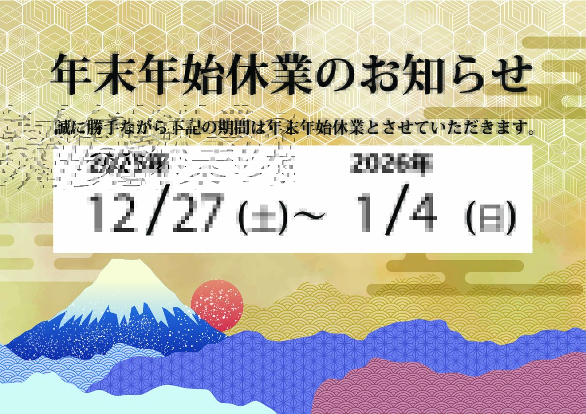 さて、下記のように年末年始休暇について、以下の通りお知らせいたします。